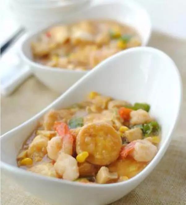 蝦仁玉子豆腐:鮮蝦去除內(nèi)臟洗凈,濾干水后放入一個碗里,加入鹽和料酒腌制10分鐘,玉子豆腐切成1厘米左右的厚片,草菇,蒜頭切片,蔥切成段,紅辣椒切成圈,鍋燒熱放入兩小勺的油,先炒蝦仁,再加入蒜片、蔥段及草菇翻炒,倒入勾芡過的淀粉和辣椒炒勻,最后將玉子豆腐放入輕輕翻炒兩分鐘左右就可以起鍋了。玉子豆腐最后放入是為了避免弄爛,這樣才能成型好看。