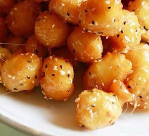 拔絲豆腐:將豆腐切成三厘米長、兩厘米寬、一厘米厚的片,逐面沾勻面粉,用濕淀粉攪勻成糊,鍋內(nèi)放油燒至五成熱,將和過面粉的豆腐片掛勻淀粉糊,下鍋炸至表面金黃時撈出慮掉油,鍋內(nèi)放入少量水,開火加入白糖炒成糖漿,能拔出絲來的時候,放入炸好的豆腐翻炒掛勻糖漿,出鍋裝盤即可,食用時備上一碗涼開水。